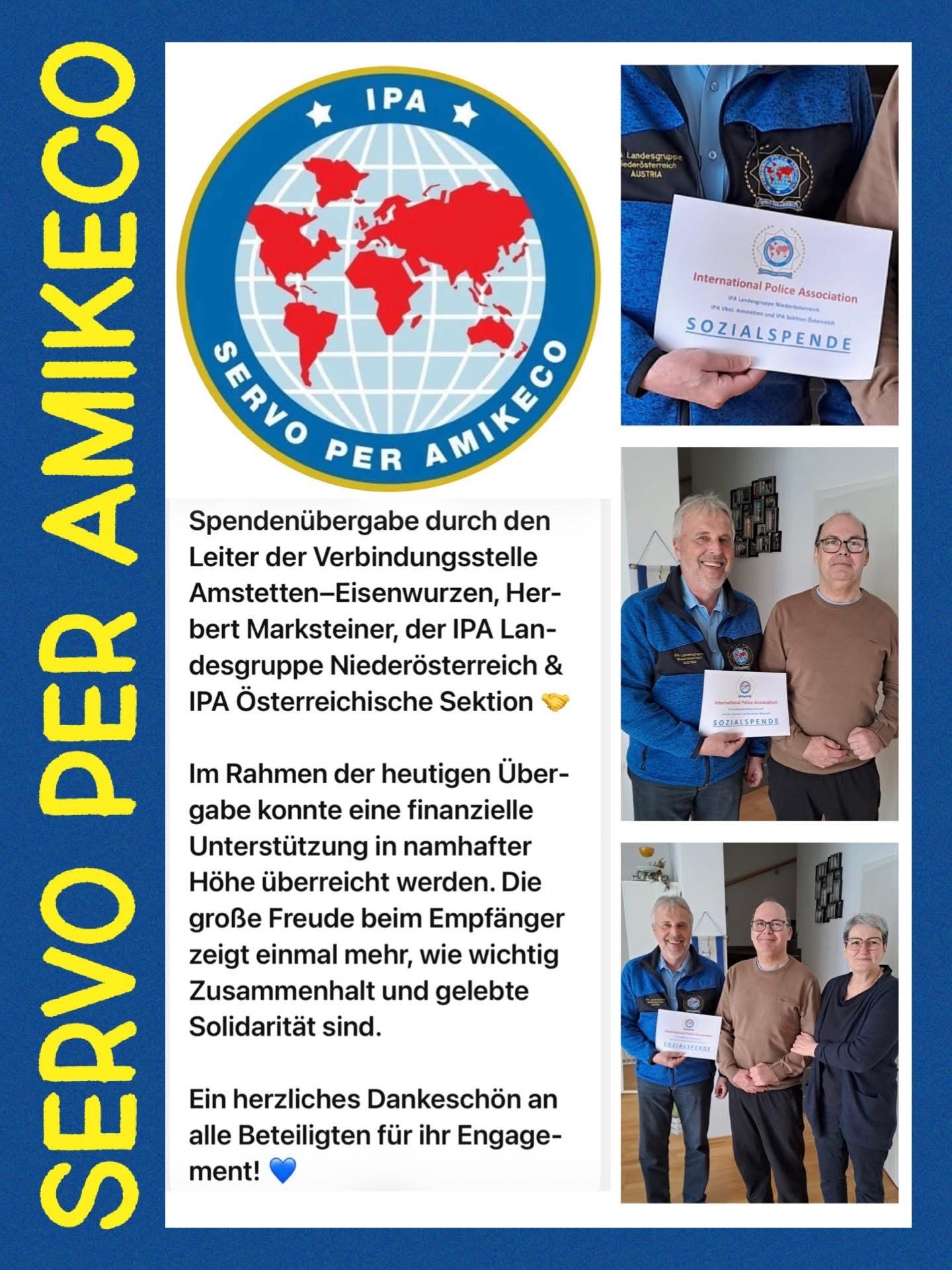 Die IPA Landesgruppe Niederösterreich, die Sektion Österreich sowie die Mitglieder der IPA Korneuburg-Hollabrunn beteiligten sich engagiert an der sozialen Spendenaktion und setzten damit ein starkes Zeichen der Solidarität.
